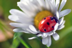 Sluit je ogen (als je wil) en beeld je in dat je een klein lief rood lieveheersbeestje bent met zwarte stippen.