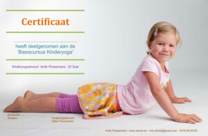 Bij deze cursus hoort een volledig uitgewerkte bundel en een door El Sole erkend certificaat dat je het recht geeft om als een gediplomeerd ‘El Sole kinderyogadocent(e)’ naar buiten te treden. Verder wordt je, als je wil mee opgenomen in het platform van El Sole.
